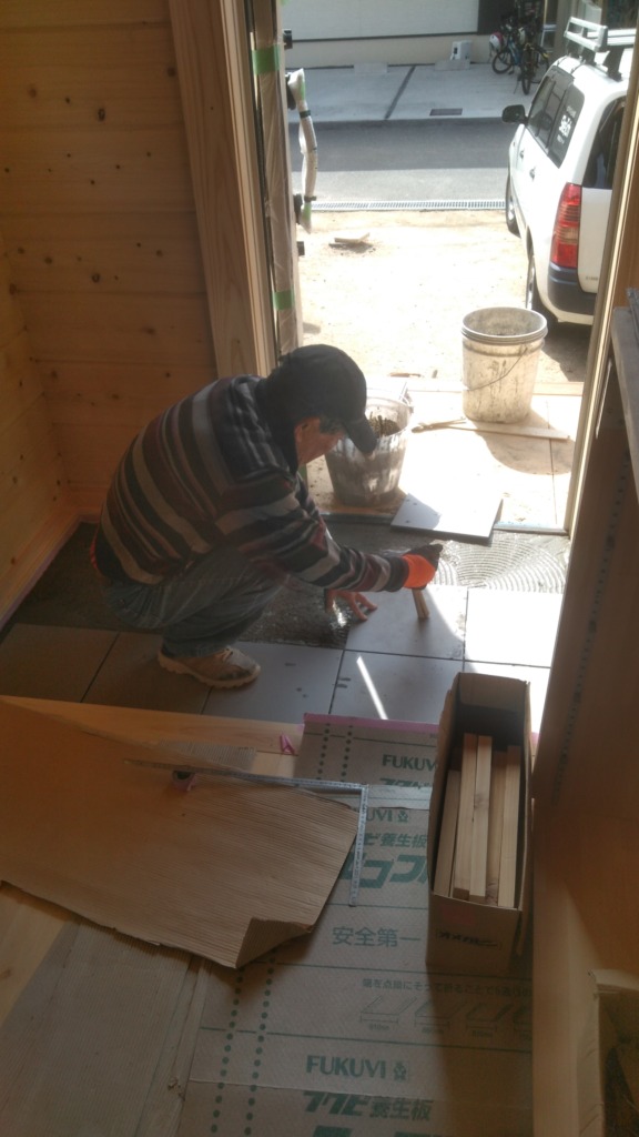 大工工事が終わり、今週はタイル屋さん、配管屋さん、電気屋さんと賑やかです。