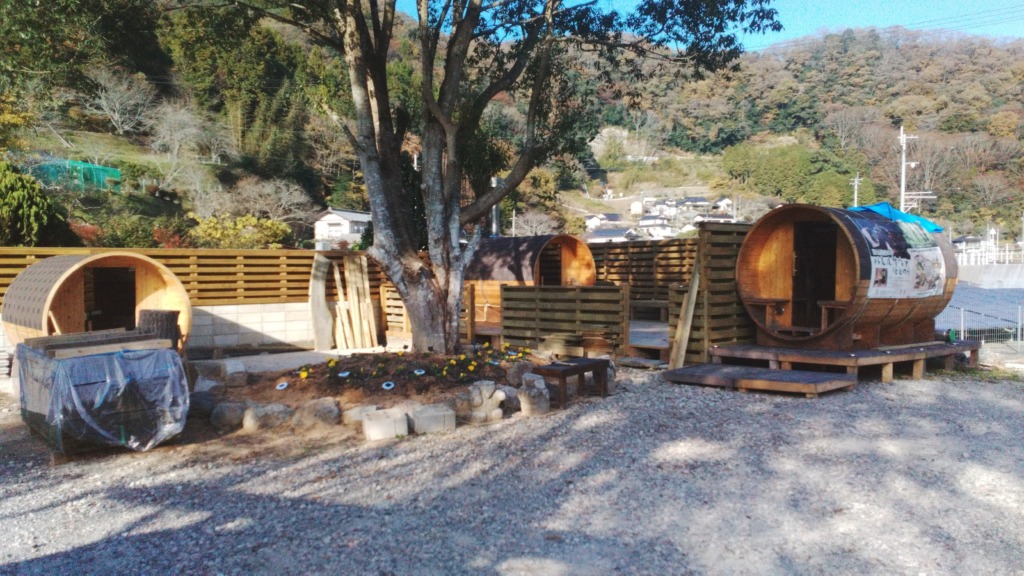 現在展示用も含めて3棟のバレルサウナが展示されています。