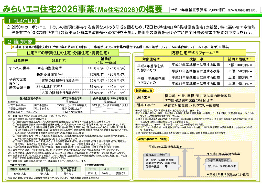 今年も国の住宅補助金=2026住宅省エネキャンペーンが始まります。 今年も3省(環境省、経済産業省、国土交通省)が連携して補助金が出ます。