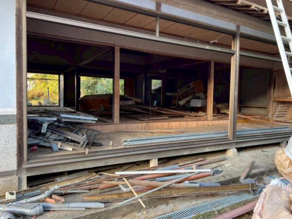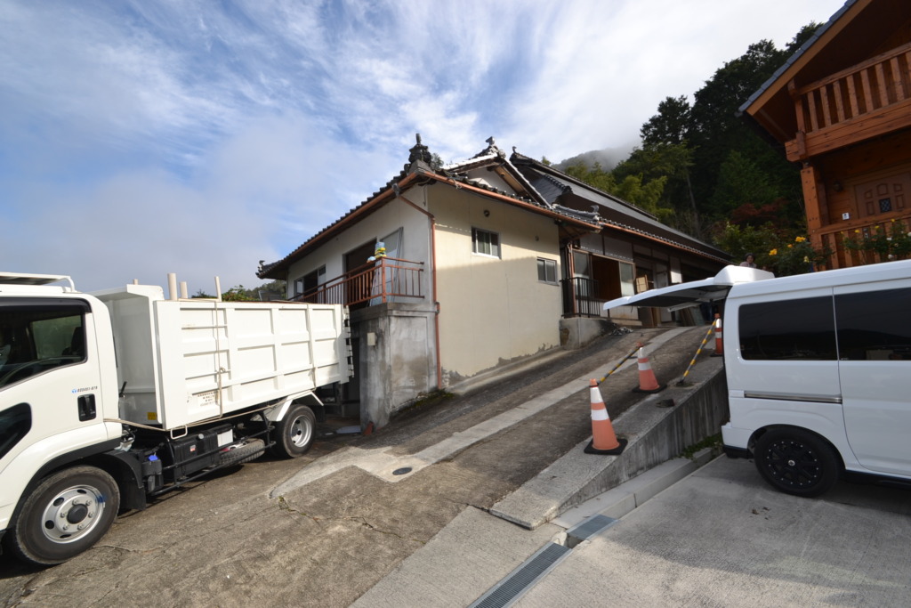 3年前にスケッチでログハウスを建てられたA様の自宅敷地内の古民家の解体工事が始まりました。 築約130年です。 11/4。まずは家財道具の撤去りスタート。