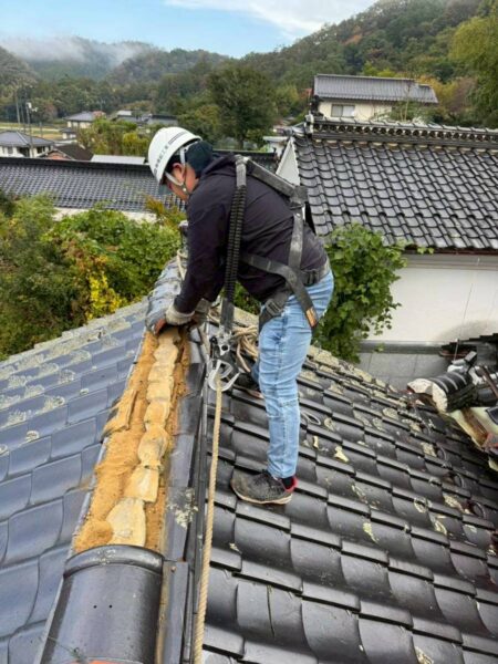 11月7日時点、屋根の板金が取られ藁葺き屋根が現れました。 130年の時を感じます。 安全第一で進めていきます。