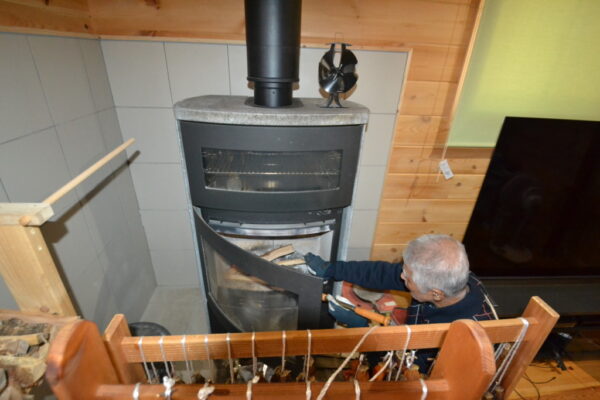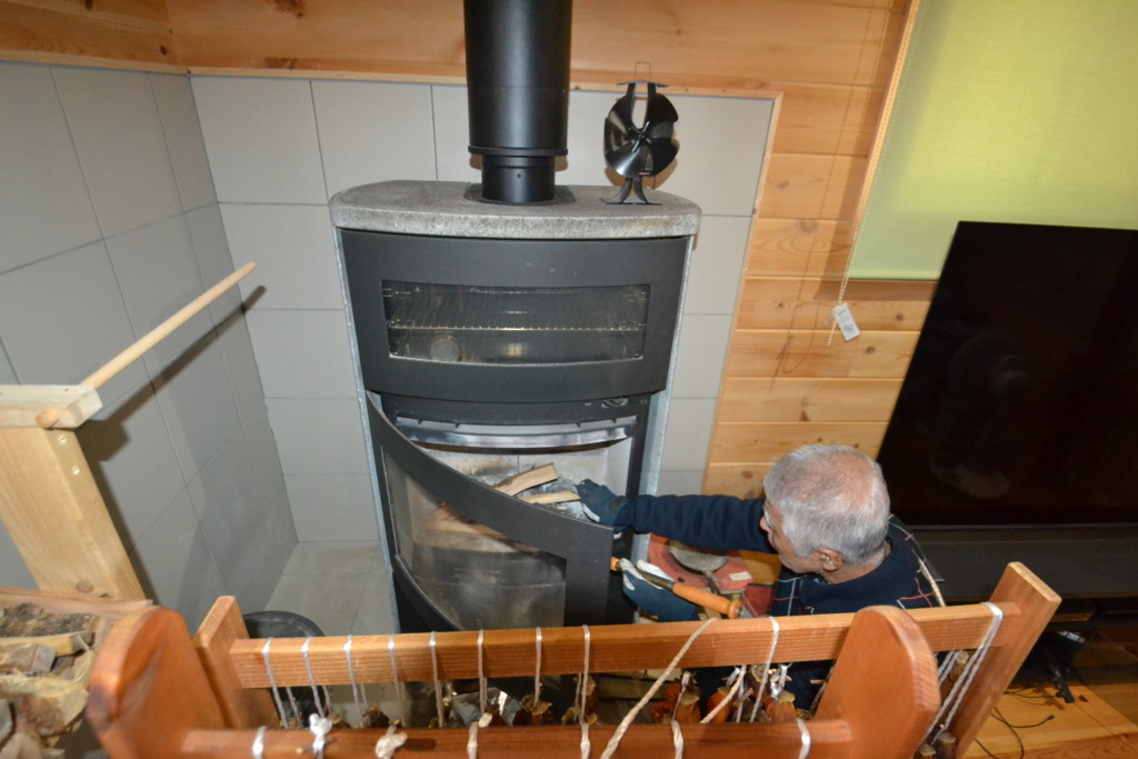 こちらが3年前にスケッチ建てられたログハウスです。 ログハウスの中では、ご主人が薪ストーブを焚かれていました。 その後も順調に進んでいます。
