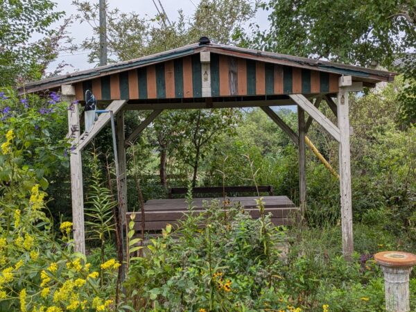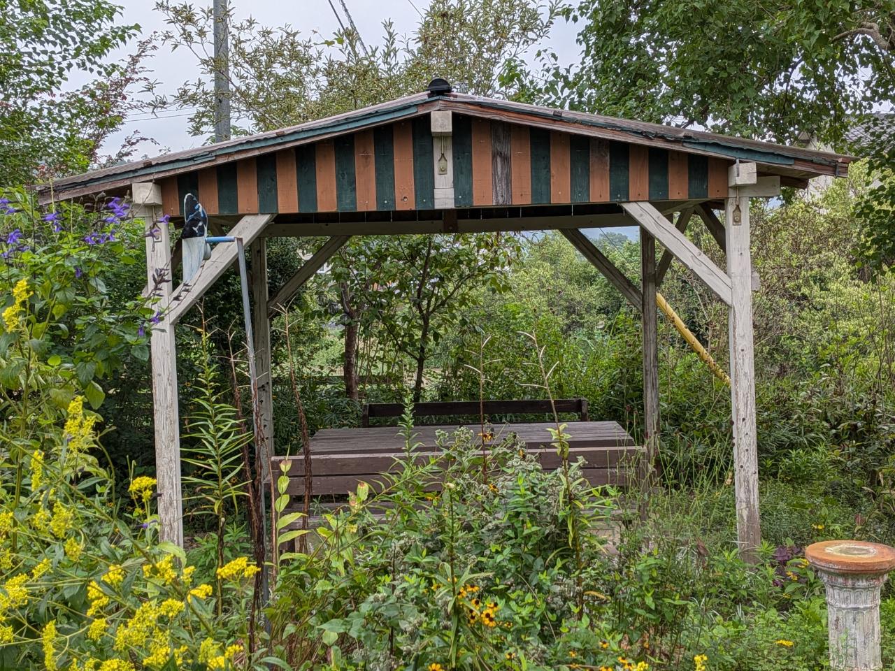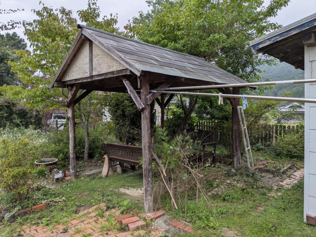 前のオーナー様の手造りの東屋などですが、かなり傷みが進み危ない状態でした。