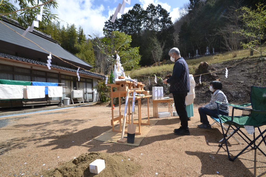 ↓こちらはログハウス新築工事前の地鎮祭と基礎工事の当時の写真です。