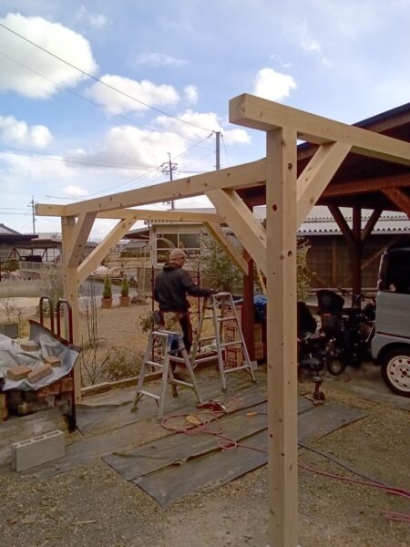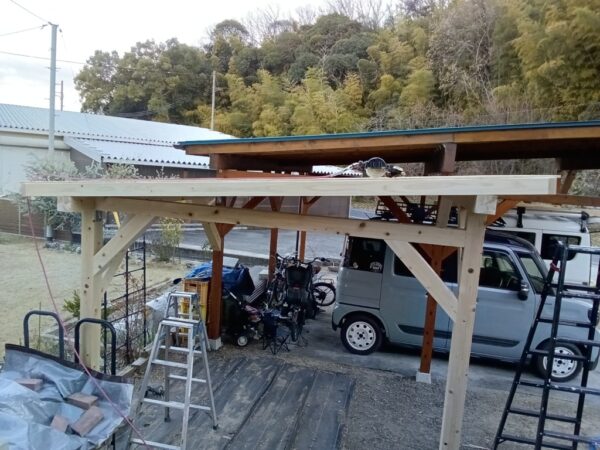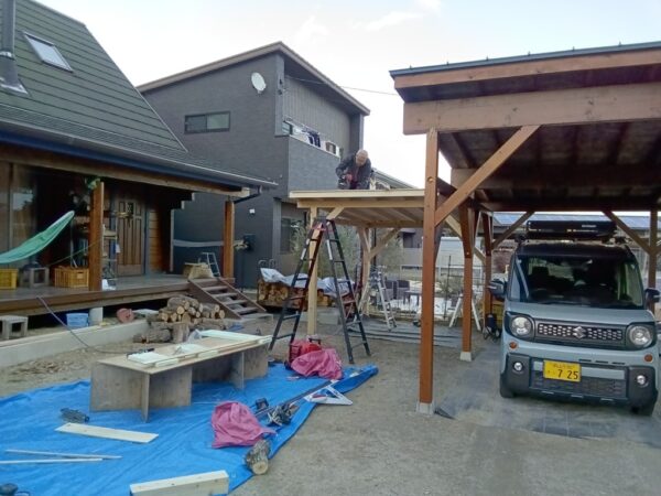 翌日に木製のカーポートの造らせて頂きました。