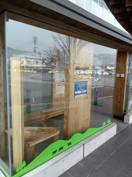 こちらのバス待合室は地元の桧のCLTで作られているそうです。