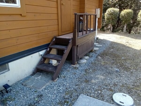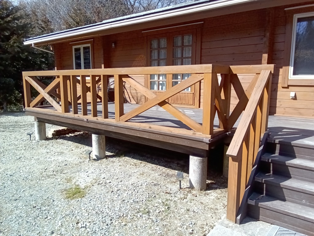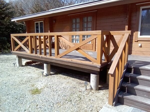 築25年の中古ログハウスを購入されたオーナー様からデッキ改修のご相談があり伺いました。