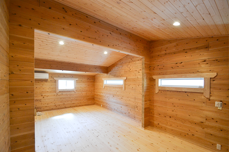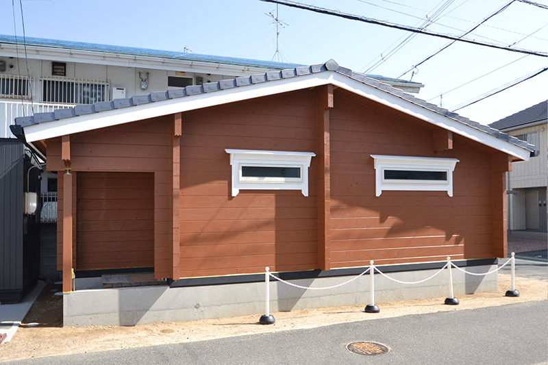 オーナーの奥様がログハウスが大好きで、多目的事務所の建築にログハウスを選択されました。